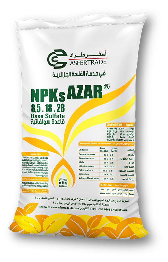 لا يحتوي سماد AZAR على كاربونات الكالسيوم و لا الكلور.