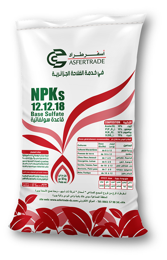 en savoir plusComposition azote 12%N P2O5 12%P K2O 18%K Base sulfate S(SO3) 15.3% Domaine d’application Pomme de terre De 10 à 12 […]