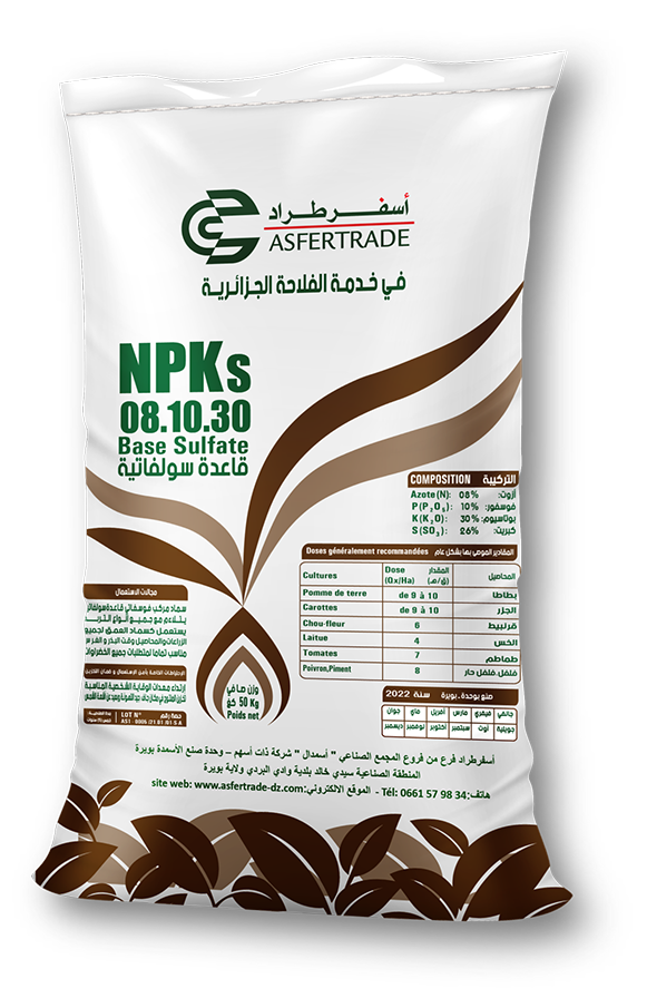 en savoir plusComposition azote 8%N P2O5 10%P K2O 30%K Base sulfate S(SO3) 25.5% Domaine d’application Pomme de terre De 9 à 10 […]